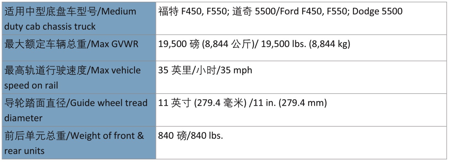 哈斯科鐵路公司生產的1920中型公鐵兩用車適用于中型底盤車,使其可在公路和鐵路上行駛???車必須滿足哈斯科鐵路公司的推薦規(guī)格。1920中型公鐵兩用車設計堅固緊湊,可提供軌道作業(yè)所 需的持久性。它采用了液壓鎖、鋼軌電子絕緣和機械式安全銷。